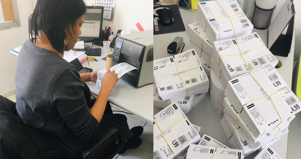 Etiquetas adesivas em rolo e impressoras térmicas de etiquetas